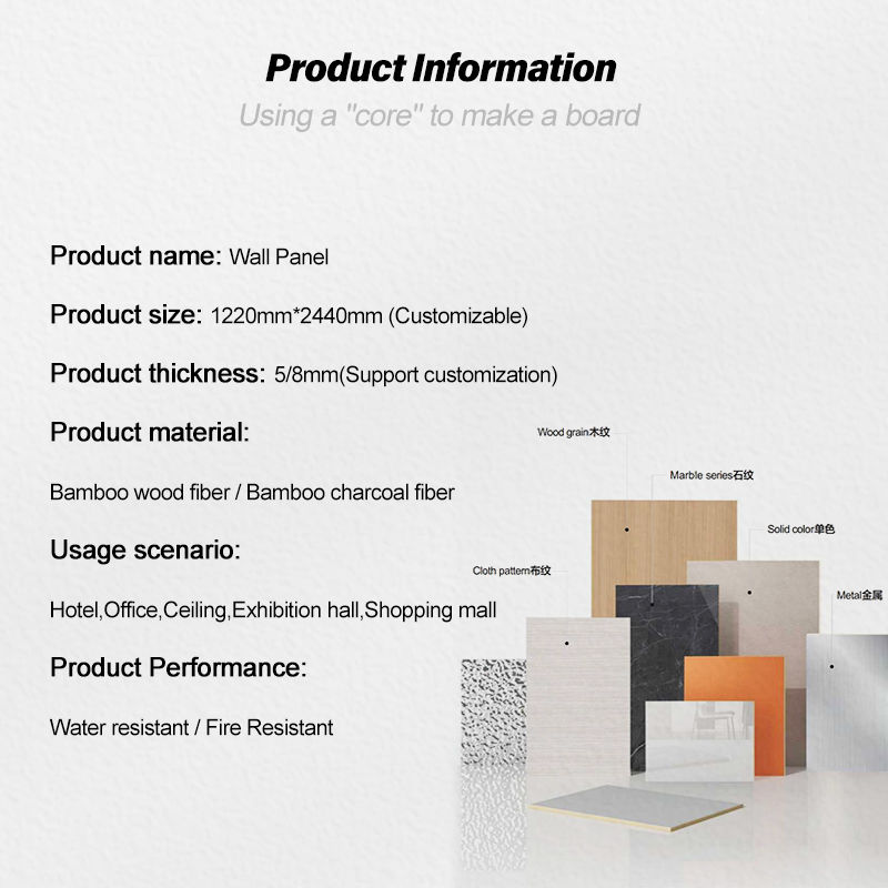 | मोटाई: | 5 मिमी/8 मिमी | प्रोडक्ट का नाम: | बांस फाइबर दीवार पैनल |