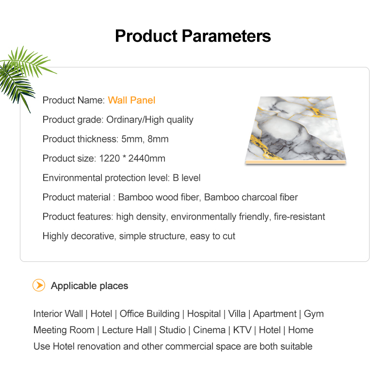 | मोटाई: | 5 मिमी/8 मिमी | प्रोडक्ट का नाम: | बांस फाइबर दीवार पैनल |