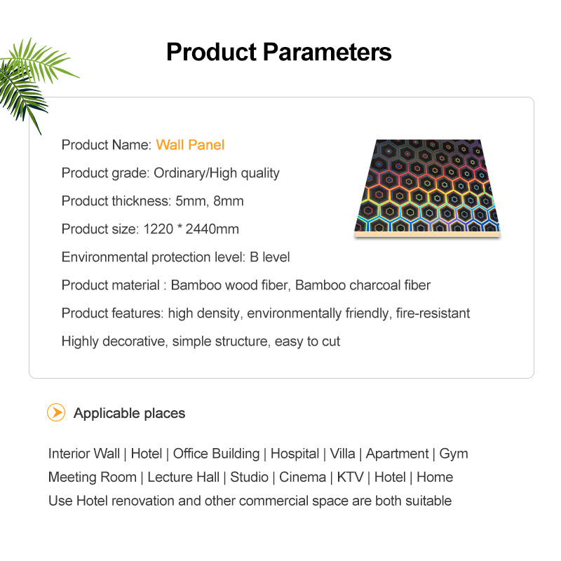 | मोटाई: | 5 मिमी/8 मिमी | प्रोडक्ट का नाम: | बांस फाइबर दीवार पैनल |
